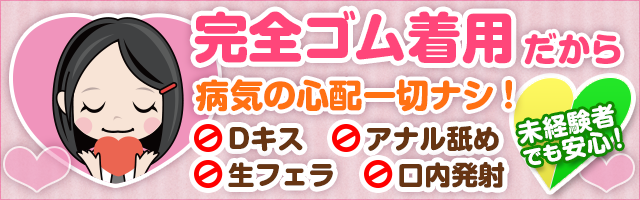 ● アナル舐めや口内発射がなく、ゴム着用で病気の心配は一切なし。